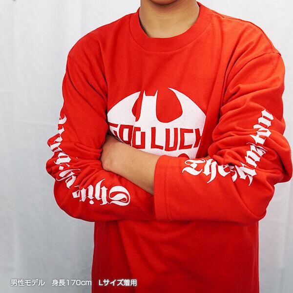 「GOOD LUCK」のワードをプリントしました。右袖には「Shine where you are」、左袖には「The Show must go on」の文字がプリントされていています♪